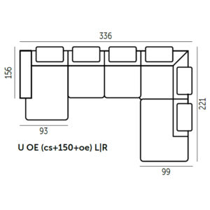See konkreetne toode on mudel “U OE (cs+150+oe) L|R”. Juhime tähelepanu, et antud stiilis U-nurgadiivanit on võimalik tellida ka teise kuju ja mõõduga. Küsige lisa!